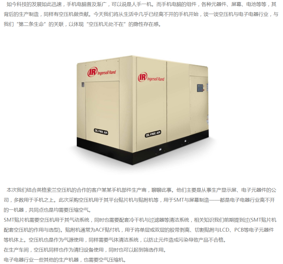 空壓機在手機行業(yè)的應用-英格索蘭空壓機